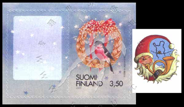 圣诞节,圣诞花环及红腹灰雀(带圣诞老人附票)个性化不干胶自贴票1全