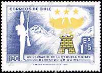Sc#422 奥希金斯军事学院150年,校徽和1822年持枪士兵1.15e 1全