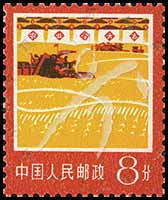 R18 农业,秋收、收割机1枚 8分