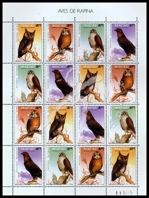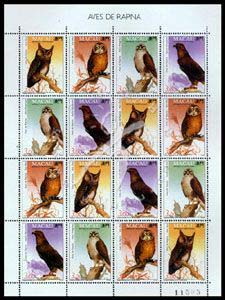 猫头鹰等猛禽小版张(4套共16票)