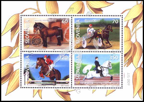 马与马术,斯洛文尼亚凉血马、卢托蒙快马、斯洛文尼亚热血马及利比扎马小全张(4票)