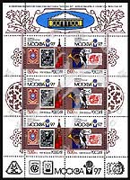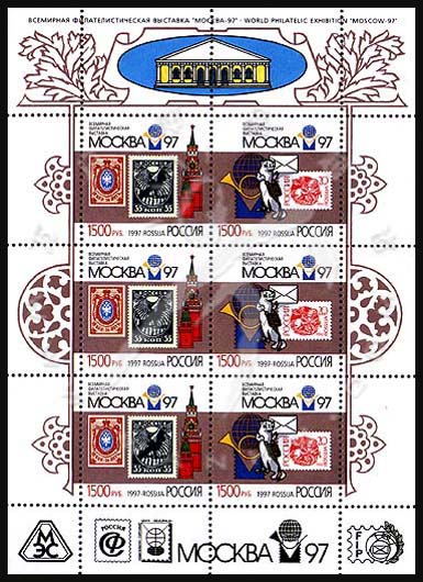 莫斯科世界邮展,俄首枚邮票双头鹰徽等票中票小版张(3套共6票)