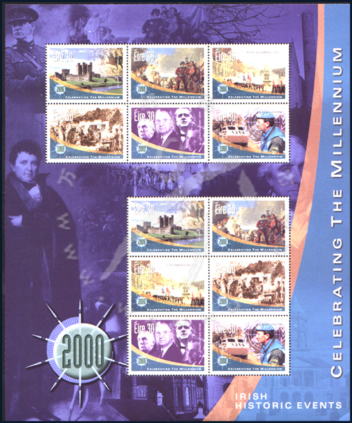 千禧年系列二,爱尔兰重大历史事件—诺曼人入侵、议会成立、国家独立、联合国维和行动等小版张(2套共12票)
