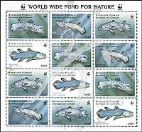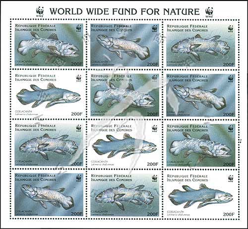 腔棘鱼,WWF野生动物基金会徽志小版张(3套共12票)