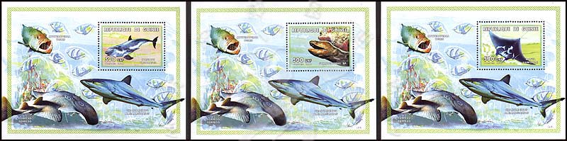 鱼类,裸胸鳝及汉氏前口蝠鲼等小型张3枚