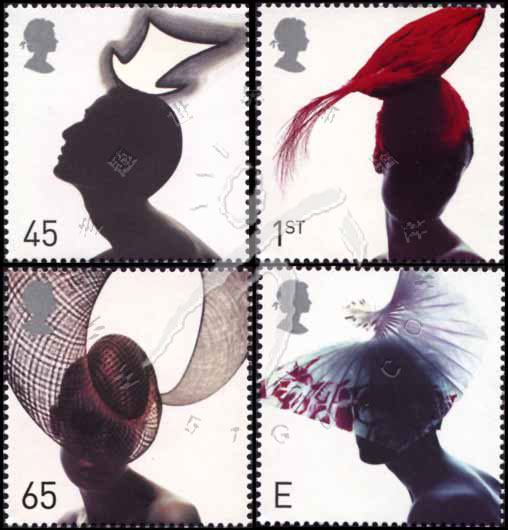 “标新立异的帽子”迎接阿斯科特赛马周,红色羽饰丝绒无边女帽、蝶型翎毛女帽、宝石状高帽、盘旋轨道式女帽4全