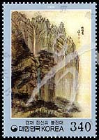 集邮周,水墨绘画《金刚山Puljongdae悬崖》1全