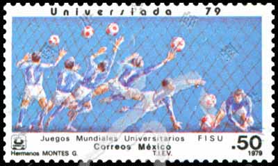 Sc#1186 墨西哥城第10届大学生运动会,足球50c (5-1) 1枚