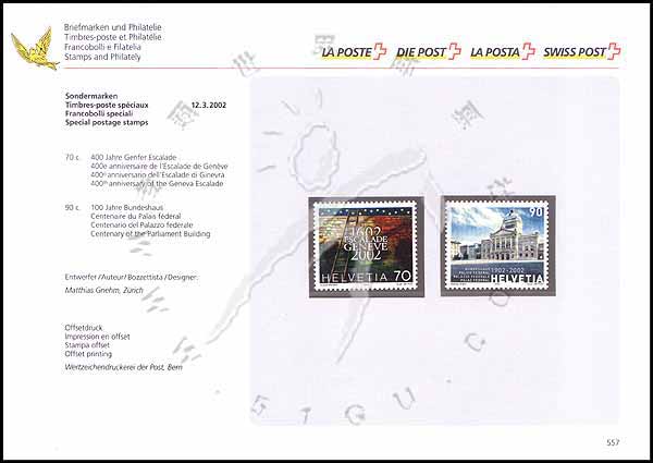 瑞士国会大厦落成百年和日内瓦“梯子节”400周年纪念邮票卡(2票)1C