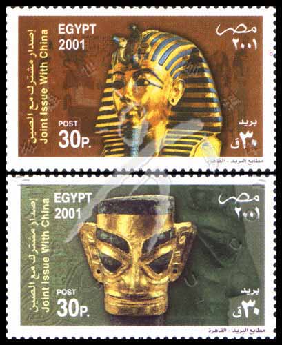 古代金面罩头像,三星堆遗址金面罩及法老图坦卡蒙金面罩2全(与中国联合发行)