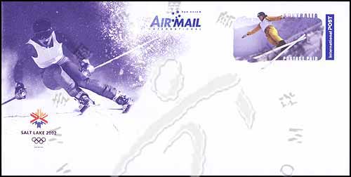 美国盐湖城冬奥会,徽志、花样跳雪、速降滑雪等航空邮资封1全(我社已售缺)