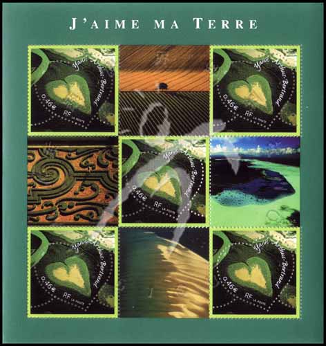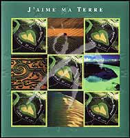 情人节,新喀里多尼亚红树林心形Voh湿地航空俯瞰图小全张(5票,带4枚附票,邮票为双重齿孔,内齿孔为心形)
