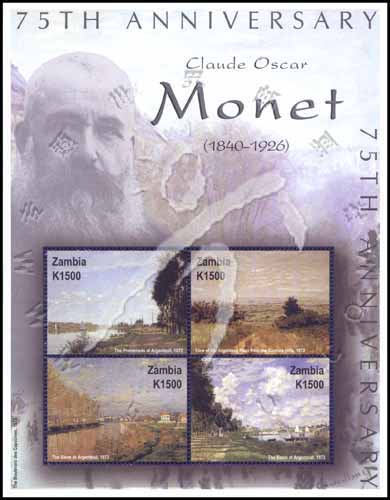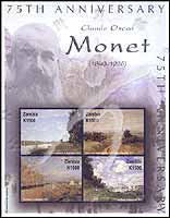 法国印象派大师莫奈逝世75周年,肖像和Argenteuil即景画作小全张(4票)