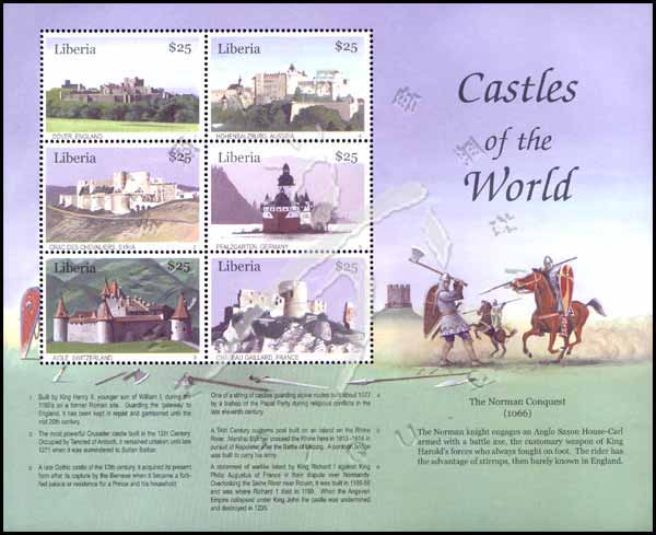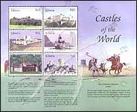 中世纪城堡,英国多佛尔堡、奥地利Hohensalzburg堡、叙利亚武士堡、德国Pfalzgarten堡、瑞士艾格勒堡及法国盖拉德堡小版张(6票)