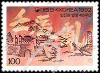 Sc#1674 壬辰战乱爆发400周年,中文书法及城门100won 1全