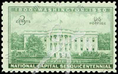 邮票介绍:Sc#990 华盛顿首府150周年,白宫3c (4-2) 1枚