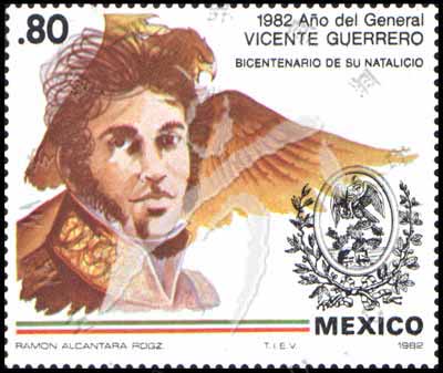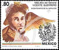 Sc#1283 总统维森特.格雷罗将军诞生200年,头像及鸟80c 1全