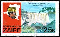 Sc#908 蒙博托总统和地图、瀑布25k (8-7) 1枚