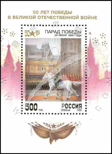 Sc#6256 二战胜利50周年,朱可夫元帅在红场阅兵小型张500r