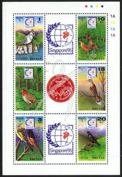 新加坡邮展,展徽、红原鸡、鸟小版张(6票)