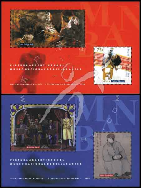 布宜诺斯艾利斯国家美术博物馆馆藏画,卡洛斯·阿隆索等人作品《肖像画》、《管弦乐队》及《无题》等2枚小全张(各2票共4票)