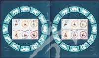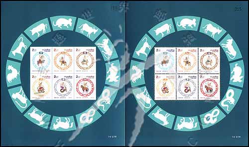 马年生肖,十二生肖图及十二地支中六属相图(牛、虎、兔、龙、蛇、马)有齿无齿小全张一对(各6票)