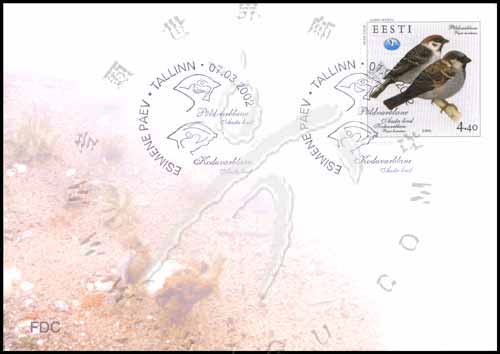 2002年度鸟类(爱沙尼亚鸟类协会推举),家雀及麻雀1全邮票首日封