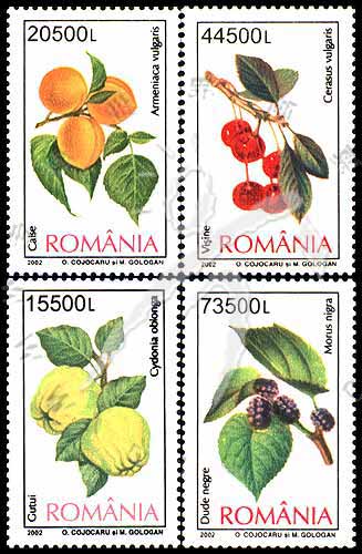 水果,樱桃、木梨、野杏及黑桑高面值票4全