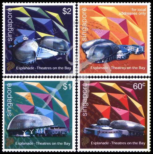 新加坡滨海艺术中心艾斯普奈(Esplanade)开幕纪念,艺术中心的徽志、建筑的不同角度等4全