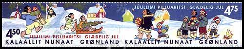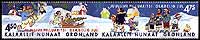 圣诞节,送礼物、滑雪橇、教堂、雪景等不干胶自贴票2联(细长形票)