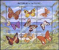 蝴蝶,蛱蝶、粉蝶、斑蝶、灰蝶、凤蝶、眼蝶等小版张(9票)