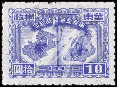 Sc#5L64 上海与南京解放,两市地图$10 (9-5) 1枚