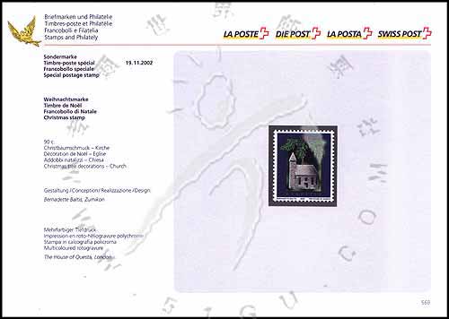 圣诞节,圣诞树装饰物小挂件—教堂模型邮票卡(1票)1C