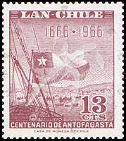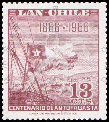 Sc#C270 安托法加斯塔建城百年,国旗和船航空票13c 1全
