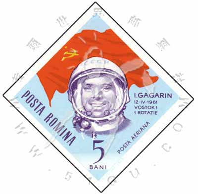 Sc#C151I 苏宇航员尤里.加加林及国旗无齿航空票5b (10-1) 1枚