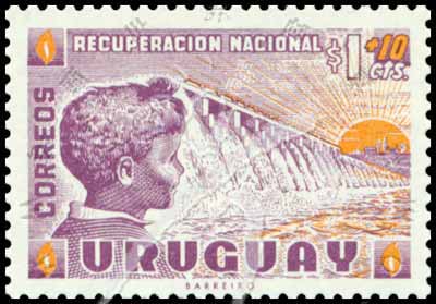 Sc#B7 国民经济恢复,水电大坝日出附捐票1p+10c (5-3) 1枚