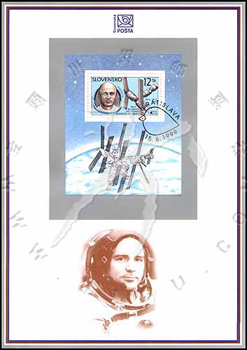 第一位登上太空的斯洛伐克人伊凡·贝拉(参与斯洛伐克-法国-俄罗斯联合太空探索行动),肖像及Soyuz TM-29飞船等雕刻版小型张首日纪念张