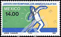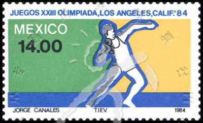邮票介绍:Sc#1351 洛杉矶奥运会,铅球14p (7-1) 1枚