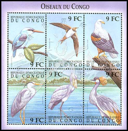 鸟,海雕、草鹭、鲸头鹤及蓝颈冠鸟等小版张(6票)
