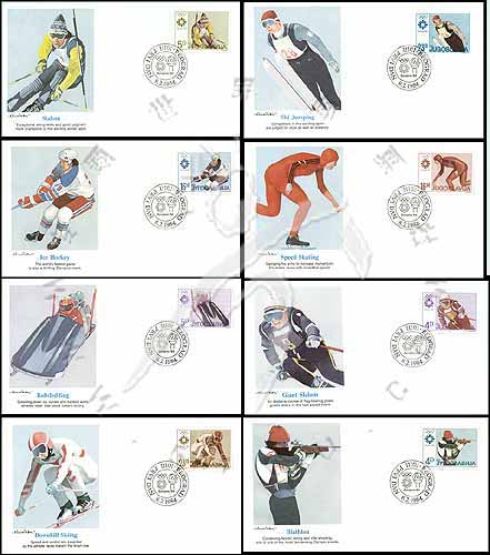 第14届南斯拉夫萨拉热窝冬奥会(4),各种比赛项目和运动员等首日销印封8全