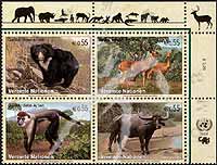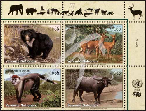 濒危物种,印度懒熊、坡鹿、白领白眼睑猴和美洲水牛4方联