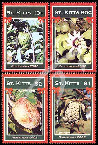 圣诞节,热带水果—番荔枝($1)、百香果(80c)、刺果番荔枝(10c)和牛心果($2) 4全