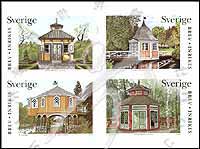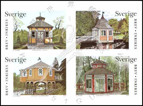 瑞典夏季别墅一,具有中国风格的凉亭、农场别墅等不同风格凉亭不干胶自贴票4联