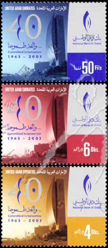 迪拜国家银行大厦建立40周年,徽志、建筑(涂金大门代表老式dhows独桅帆船的航行)等3全