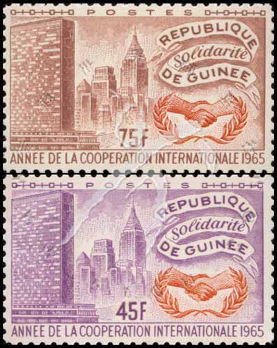 Sc#395-6 国际合作年,纽约的象征—帝国大厦1枚