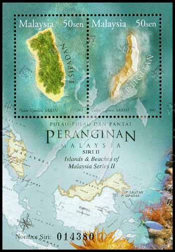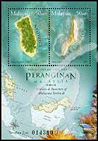 马来西亚岛屿与海滩系列二,岛屿与海滩景色及地理位置图等小全张(2票)