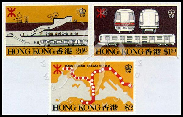香港首条地铁开通,地铁车站横剖面图、地铁机车及地铁线路图3全(已售缺)