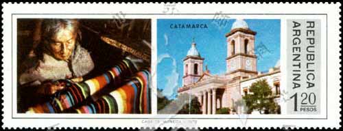 Sc#1058 西部风光,印第安妇女和卡塔马卡大教堂1.20p (5-1) 1枚