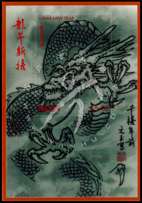 龙年生肖,飞龙及中文“龙年新禧”小型张