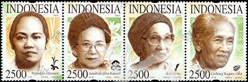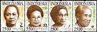 印尼杰出女性,女记者Ani Idrus、人道主义者及教育家Gedong Oka、传统草药家Nyonya Meneer和儿童教育家Sandiah Kasu及花卉雕刻版4联